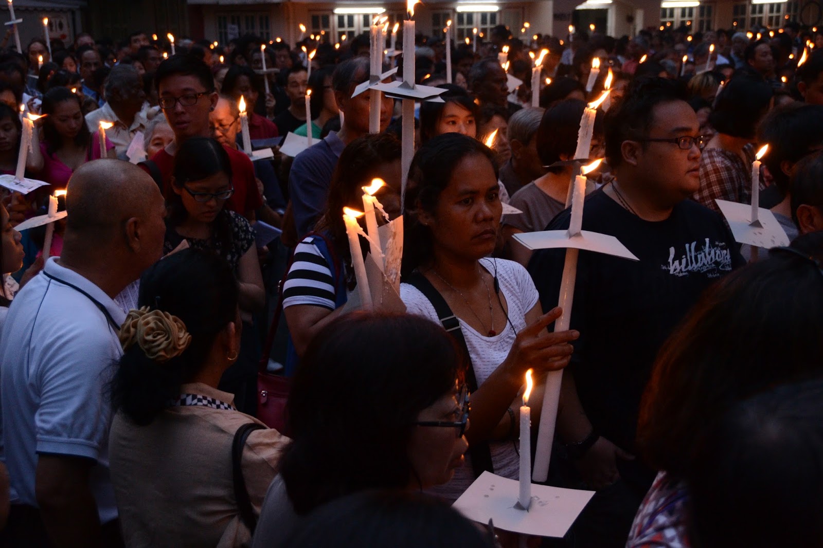 Then we moved into the crowd to get better shots of the congregation with candle light.